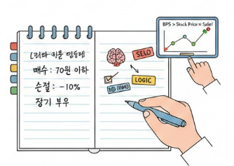 - 비결: 감정적으로 '혹시나 오를까 봐'라는 마음이 들 때마다 공책에 적힌 원칙을 펼쳐보세요. 종이에 적힌 원칙은 공포와 탐욕으로부터 당신을 지켜줍니다.